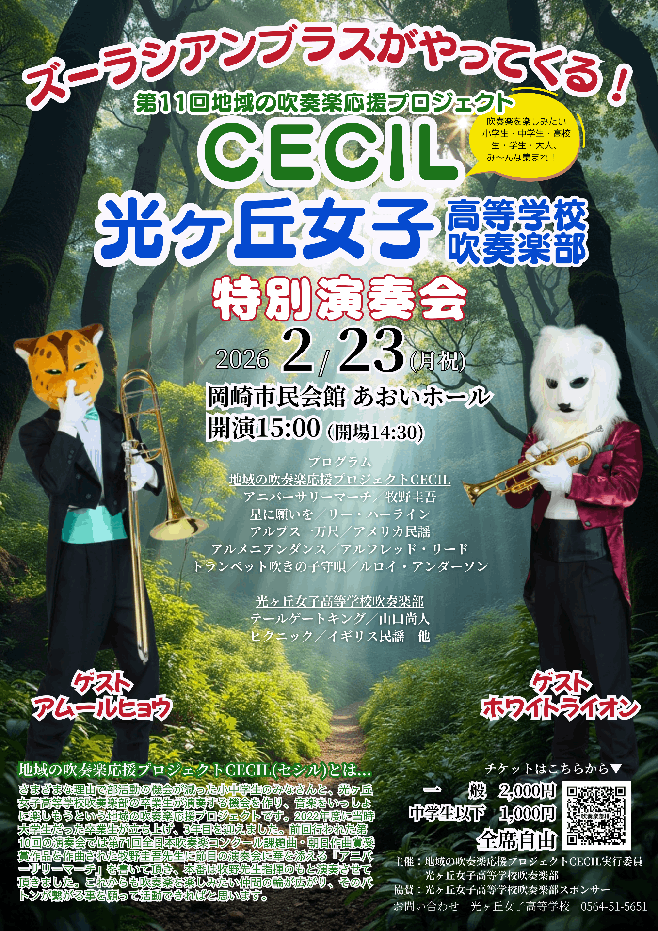 ズーラシアンブラスがやってくる!第11回地域の吹奏楽応援プロジェクトCECIL 光ヶ丘女子高等学校吹奏楽部 特別演奏会